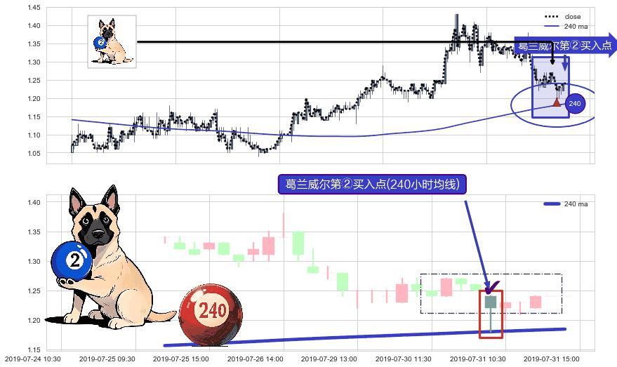 ⚀ 2019-07-31 09:30:00-小时显现 葛兰威尔均线 240小时均线 第②买入点 上升趋势的中继信号,后市看涨,买进信号