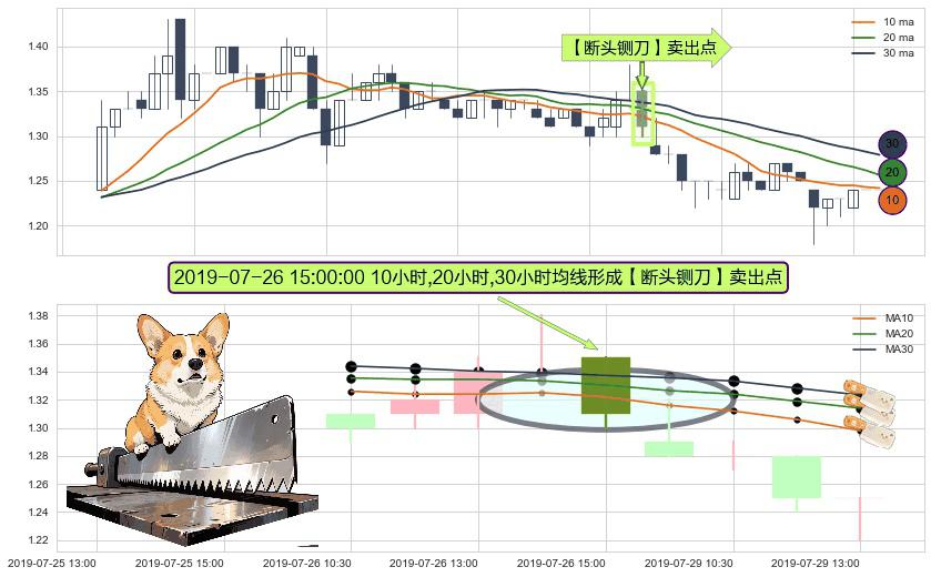⚀ 2019-07-26 15:00:00小时显现 10小时-20小时-30小时均线 【断头铡刀】卖出点 看空信号,后市看跌,卖出