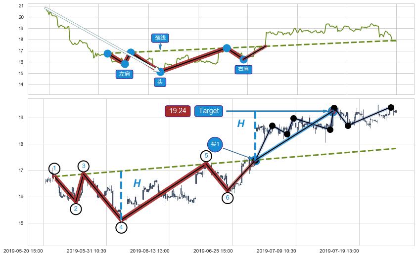 ➣ 最小反转涨幅→𝐇: 1.8522 (头部与颈线垂直距离)