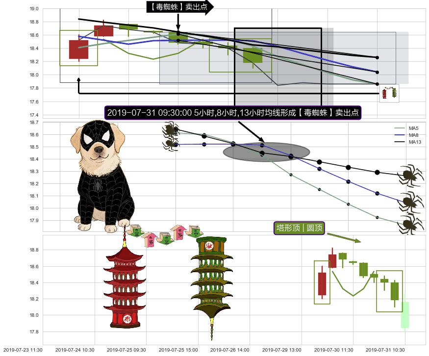 | 3 🅚:【毒蜘蛛】卖出点 ➕ 📐:头肩顶下行突破支撑位破位, 猜想持续下沉下跌,被突破的支撑位已变为阻力位 ☞ 看空信号 ⇥ 【均线】交织【图形】⇥ 综合量化分数: 48 | > |