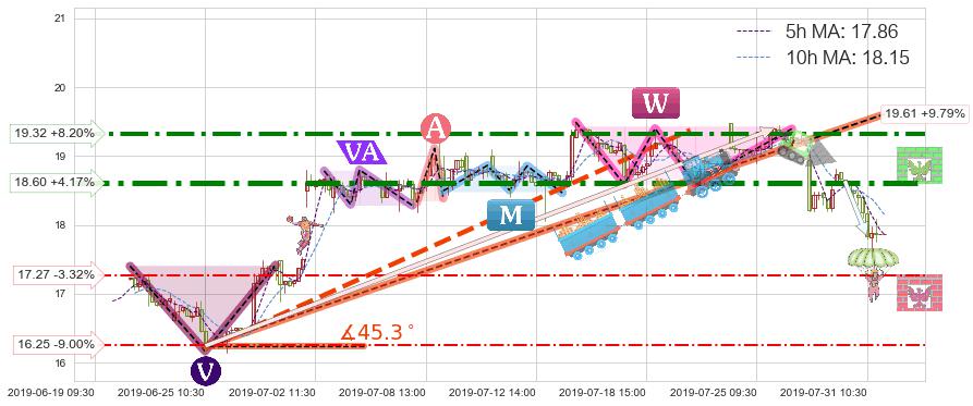 ♘ 阻力价格位19.32,可信任强度81.08%,距离最后交易2019-07-31 15:00形成的收盘价格17.86相差 +8.20%