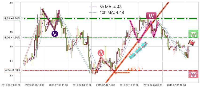 ➣ 【仅预测突破】最后价格:4.50与预测突破价格:4.56→【空间临近】后续最小【整理】第一目标价格→(08-06:10: 4.81 )
