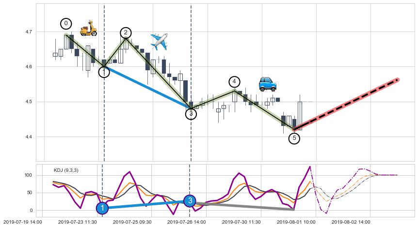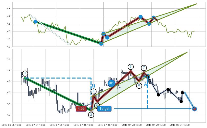 ➢ AI预测: 假定反转如期而至,第❶价格目标位置(08-01:12, 4.52)