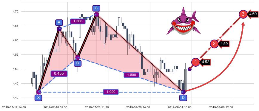 ➣ 已完成【鲨鱼】形态起点X: 07-15:14, 终点D: 07-31:11, 共71交易小时