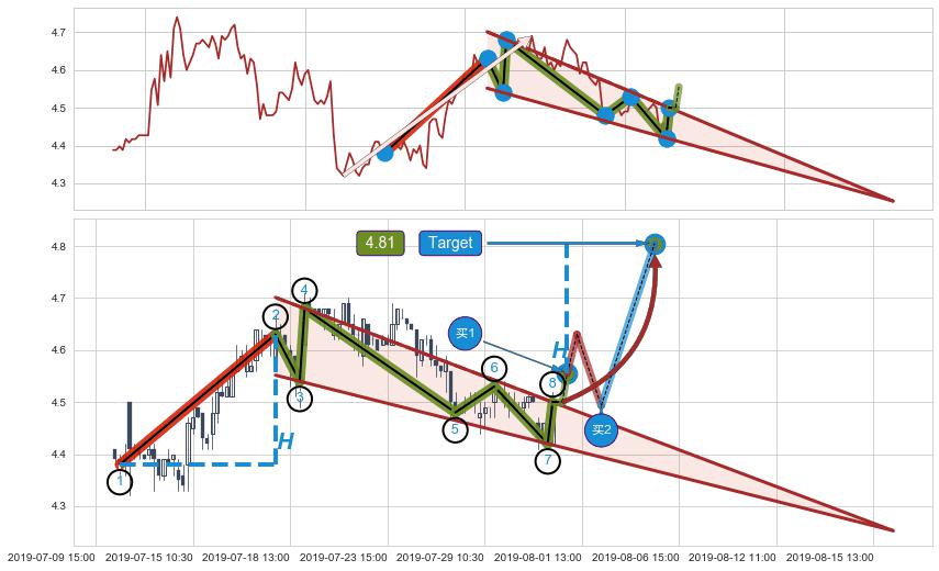 ➢ AI预测: 假定反转如期而至,第❸价格目标位置(08-07:11, 4.69)