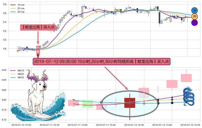 ⚀ 2019-07-12 09:30:00小时显现 10小时-20小时-30小时均线 【蛟龙出海】买入点 看多信号,后市看涨,买入