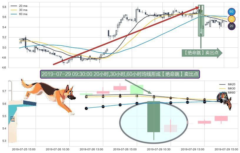 ⚀ 2019-07-29 09:30:00小时显现 20小时-30小时-60小时均线 【绝命跳】卖出点 看空信号,后市看跌,卖出