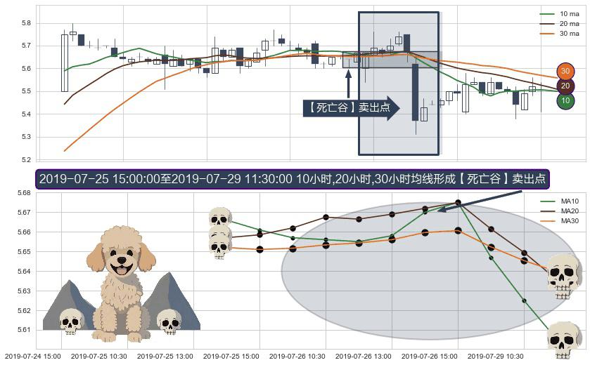 ⚀ 2019-07-26 09:30:00-小时至2019-07-29 11:30:00-小时显现 10小时-20小时-30小时均线 【死亡谷】卖出点 看空信号,后市看跌,卖出