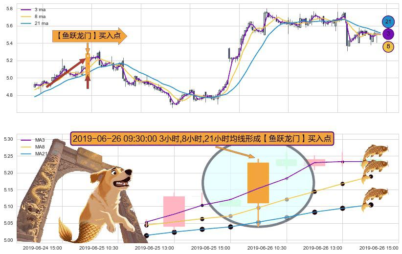 ⚀ 2019-06-26 09:30:00小时显现 3小时-8小时-21小时均线 【鱼跃龙门】买入点 看多信号,后市看涨,买入