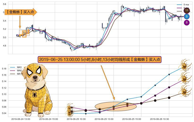 ⚀ 2019-06-25 13:00:00小时显现 5小时-8小时-13小时均线 【金蜘蛛】买入点 看多信号,后市看涨,买入