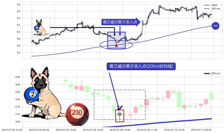 ⚀ 2019-07-08 10:30:00-小时显现 葛兰威尔均线 200小时均线 第②买入点 上升趋势的中继信号,后市看涨,买进信号