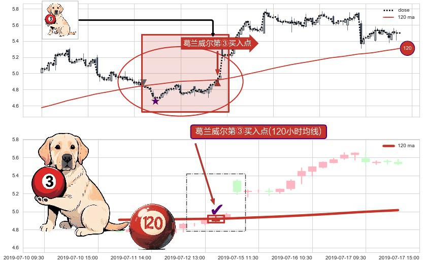 ⚀ 2019-07-12 14:00:00-小时显现 葛兰威尔均线 120小时均线 第③买入点 上升趋势的中继信号,后市看涨,买进信号