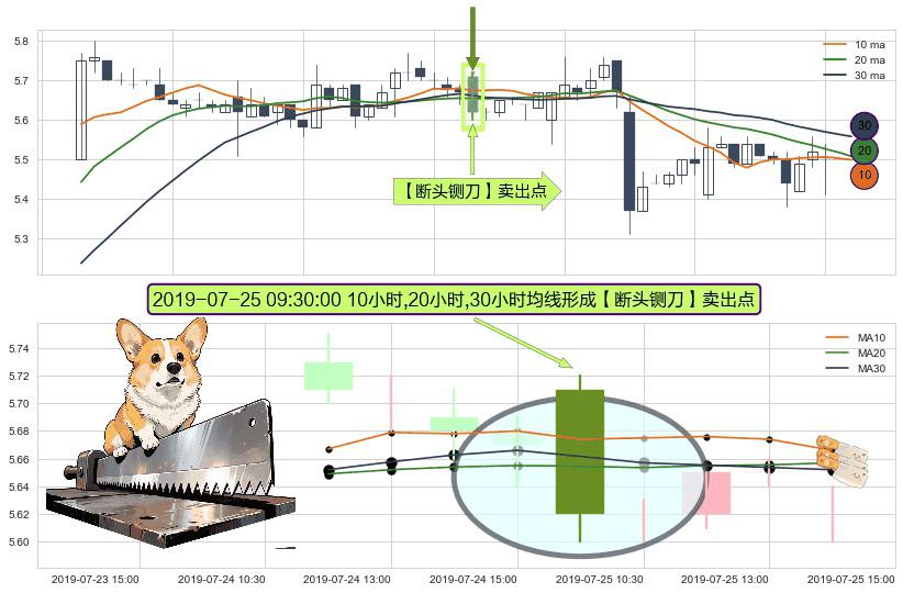 ⚀ 2019-07-25 09:30:00小时显现 10小时-20小时-30小时均线 【断头铡刀】卖出点 看空信号,后市看跌,卖出