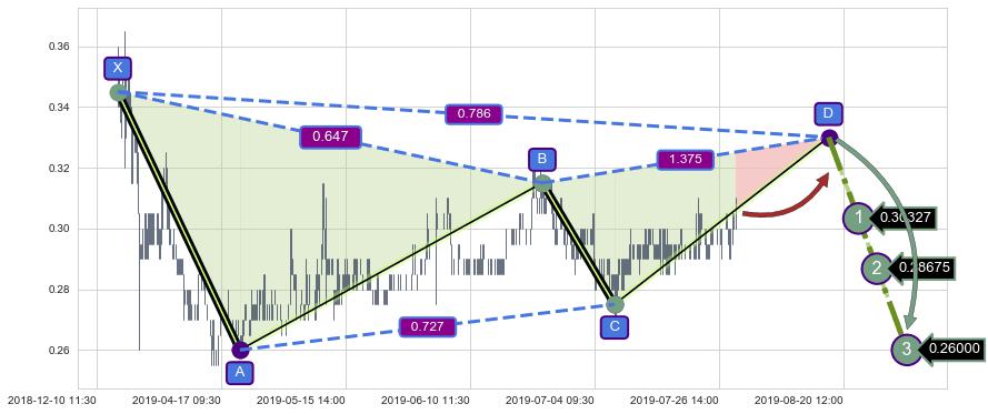➣ D点拟合预测价格0.33002,距离最后交易收盘价格0.30500相差 +8.20%