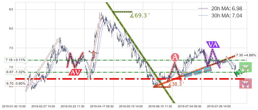 ♞ 20小时均线:6.98,30小时均线:7.04→ 快线<慢线