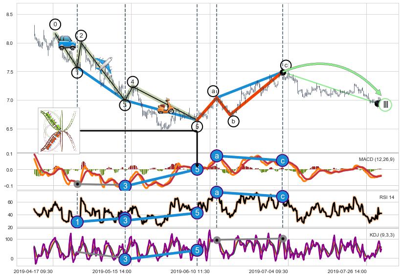 ➣ 1,3,5驱动浪MACD, RSI, KDJ走势都出现【常规背离】反转信号增强