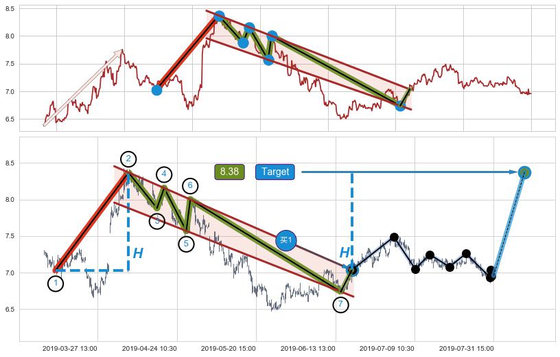 ➢ 支撑位【③⑤⑦】波动逐渐走低,构成【旗形】下平行线