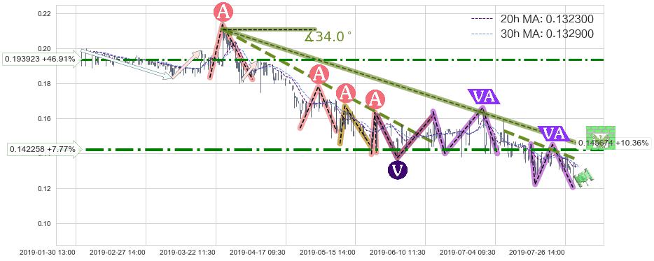 ➣ 【已确认突破】最后价格:0.132000与最小【整理】第一目标价格→(08-02:13: 0.119828 )相较: 下跌空间【中等】