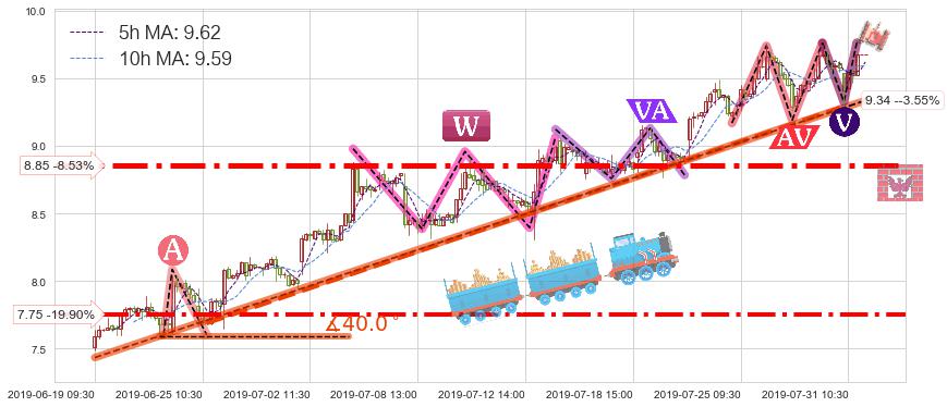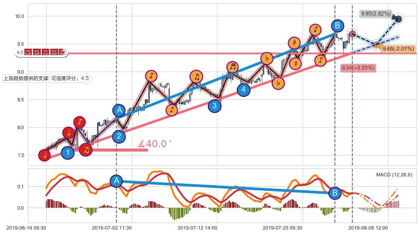 ➢ 预测:2019-08-05 11:00,【小幅回撤】稳定目前上涨趋势的前提下,预测价格:9.48