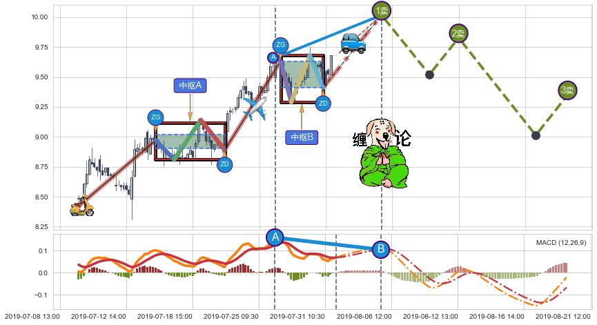 ➣ 【未完成】缠论 起点:07-09:15, 完成第1中枢A,完成第2中枢B,到达07-31:15