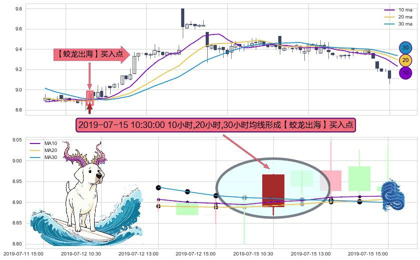 ⚀ 2019-07-15 10:30:00小时显现 10小时-20小时-30小时均线 【蛟龙出海】买入点 看多信号,后市看涨,买入