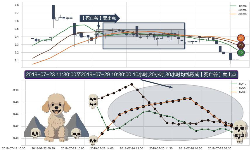 ⚀ 2019-07-23 13:00:00-小时至2019-07-29 10:30:00-小时显现 10小时-20小时-30小时均线 【死亡谷】卖出点 看空信号,后市看跌,卖出