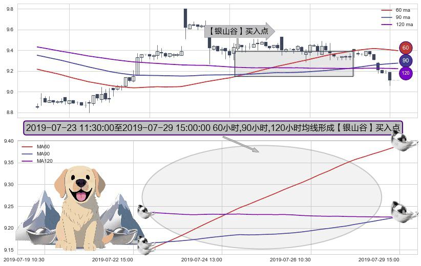⚀ 2019-07-23 13:00:00-小时至2019-07-29 15:00:00-小时显现 60小时-90小时-120小时均线 【银山谷】买入点 看多信号,后市看涨,买入