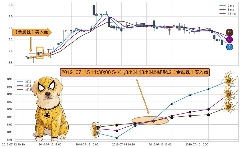 ⚀ 2019-07-15 11:30:00小时显现 5小时-8小时-13小时均线 【金蜘蛛】买入点 看多信号,后市看涨,买入