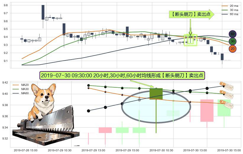 ⚀ 2019-07-30 09:30:00小时显现 20小时-30小时-60小时均线 【断头铡刀】卖出点 看空信号,后市看跌,卖出