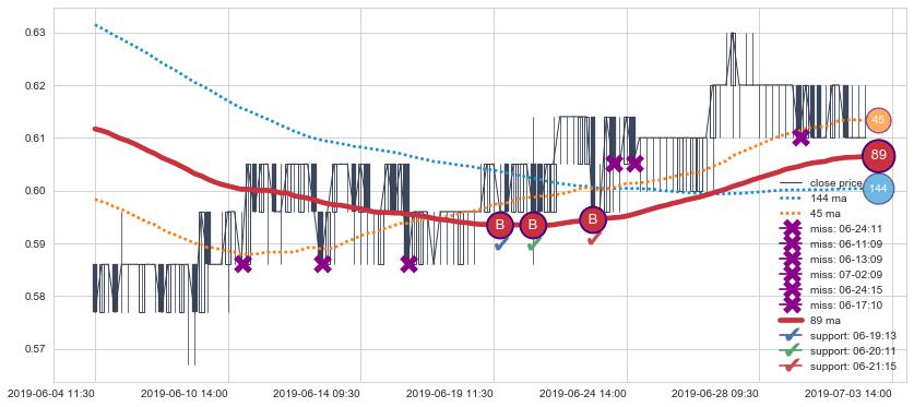 上涨趋势06-04 11:30-07-03 14:00,均线89确认关键支撑3处