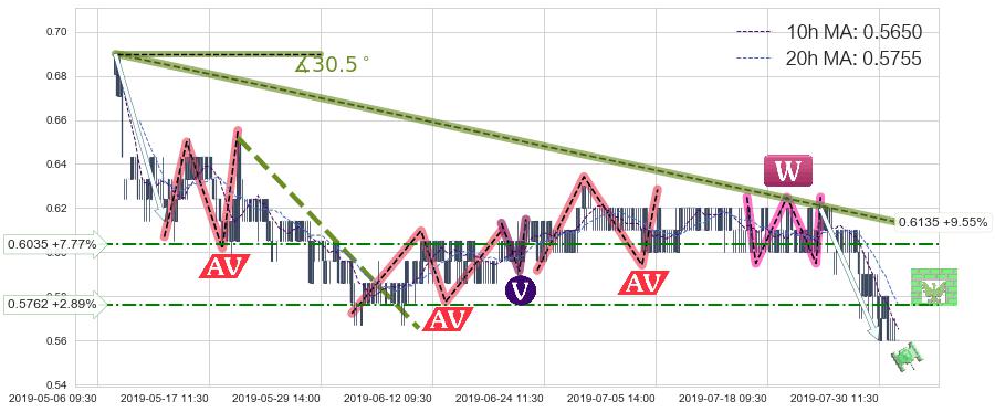 ➣ 【已确认突破】最后价格:0.5600与最小【整理】第一目标价格→(08-05:14: 0.5277 )相较: 下跌空间【中等】