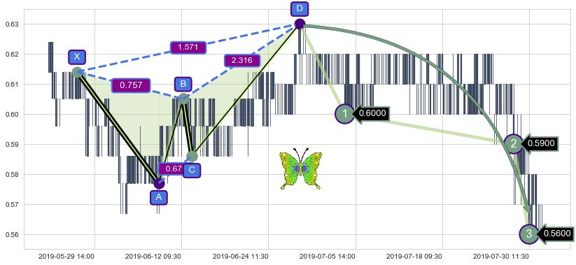 ➣ 已完成【蝴蝶】形态起点X: 05-28:09, 终点D: 06-27:11, 共129交易小时