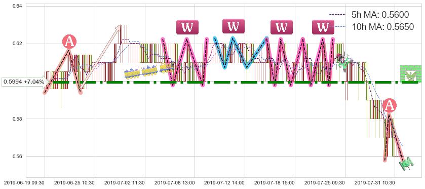 2019-07-17: 第一阻力位0.5994有效抑制了下跌浪,成功阻止了价格的继续下跌。