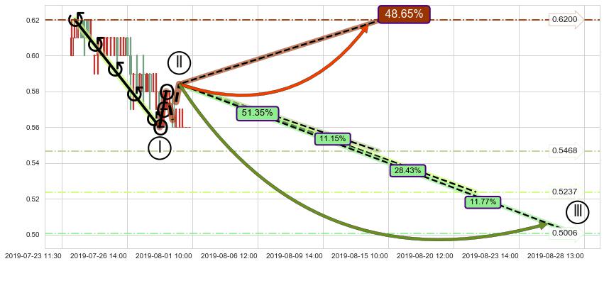 2019-07-22: 第一阻力位0.5994有效抑制了下跌浪,成功阻止了价格的继续下跌。