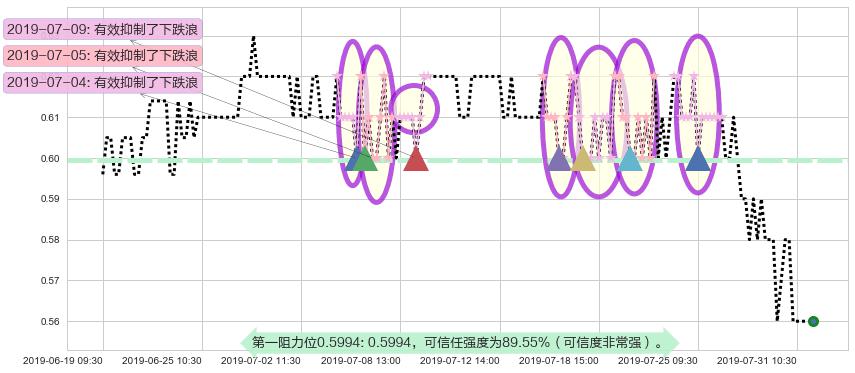 ♘ 阻力价格位0.5994,可信任强度89.55%,距离最后交易2019-07-31 15:00形成的收盘价格0.5600相差 +7.04%
