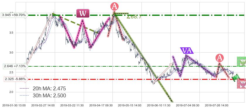 ♘ 支撑价格位2.325,可信任强度58.01%,距离最后交易2019-07-31 15:00形成的收盘价格2.470相差 -5.88%
