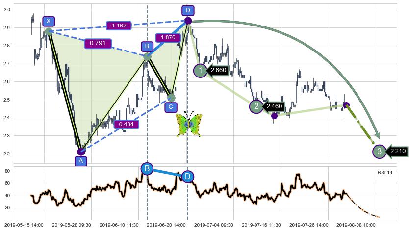 ➢ 谐波价格D点比B点高 ⤴,【RSI】指标D点比B点低 ⤵️