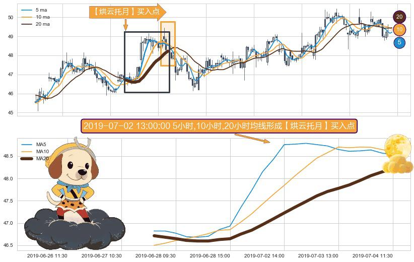 ⚀ 2019-06-27 14:00:00小时-2019-07-04 11:30:00小时显现 5小时-10小时-20小时均线 【烘云托月】买入点 看多信号,后市看涨,买入