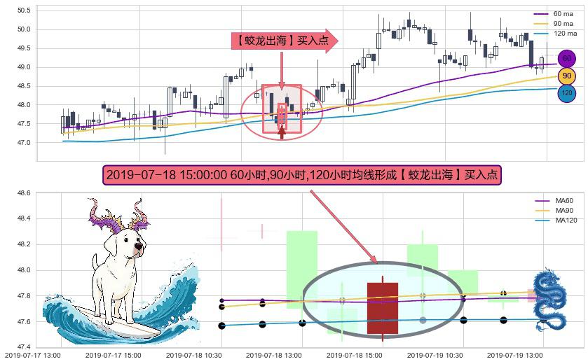 ⚀ 2019-07-18 15:00:00小时显现 60小时-90小时-120小时均线 【蛟龙出海】买入点 看多信号,后市看涨,买入