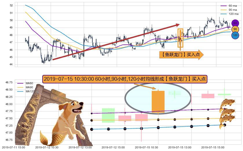 ⚀ 2019-07-15 10:30:00小时显现 60小时-90小时-120小时均线 【鱼跃龙门】买入点 看多信号,后市看涨,买入