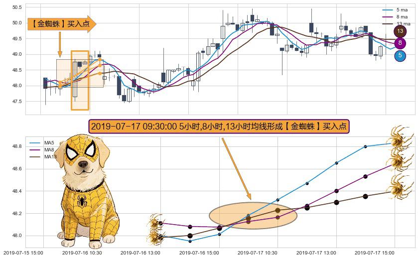 ⚀ 2019-07-17 09:30:00小时显现 5小时-8小时-13小时均线 【金蜘蛛】买入点 看多信号,后市看涨,买入