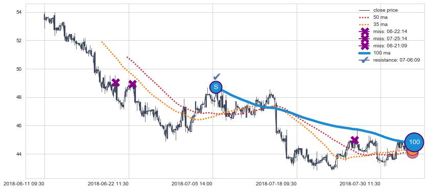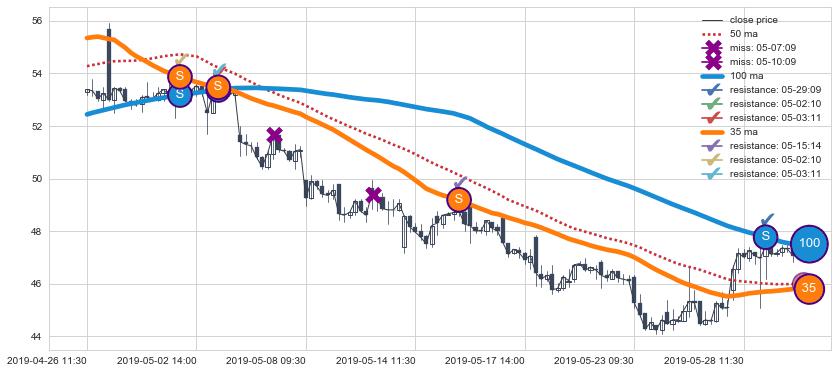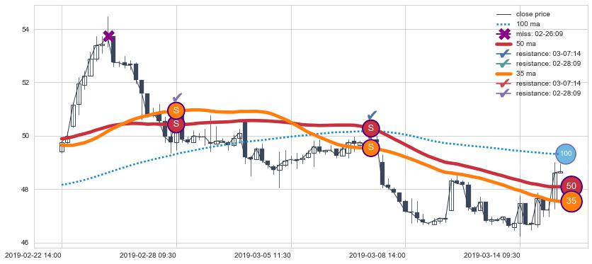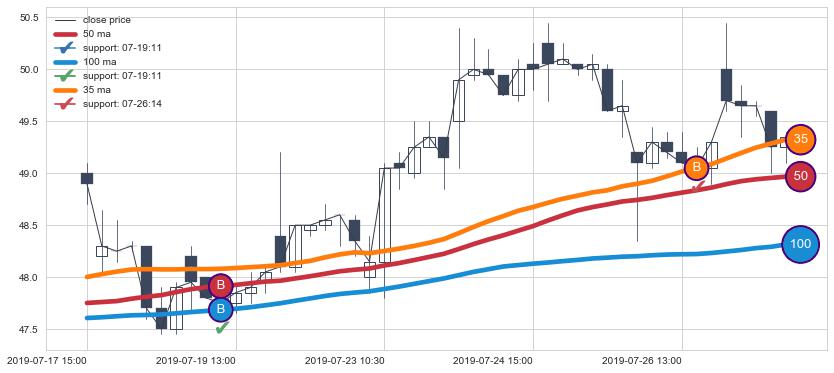 ⚂ 2019-07-18 14:00:00-小时均线向下破位,2019-07-18 15:00:00-小时重新上穿突破均线,均线支撑再次生效