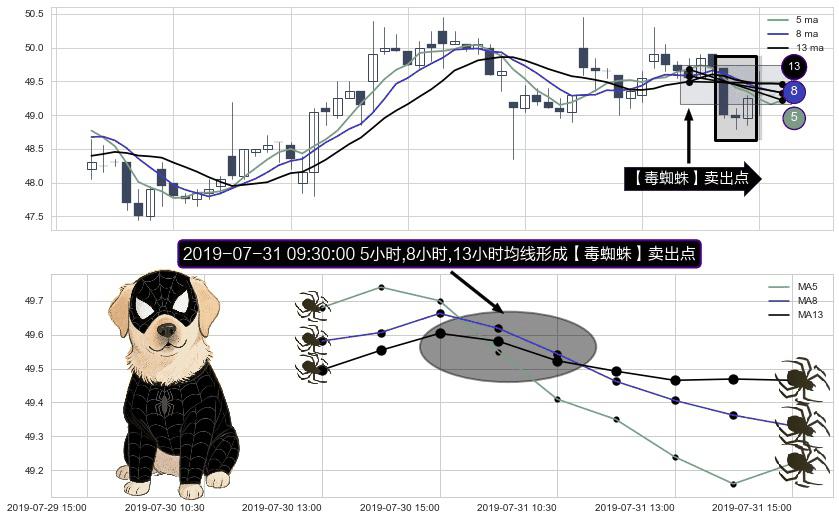 ⚀ 2019-07-31 09:30:00小时显现 5小时-8小时-13小时均线 【毒蜘蛛】卖出点 看空信号,后市看跌,卖出
