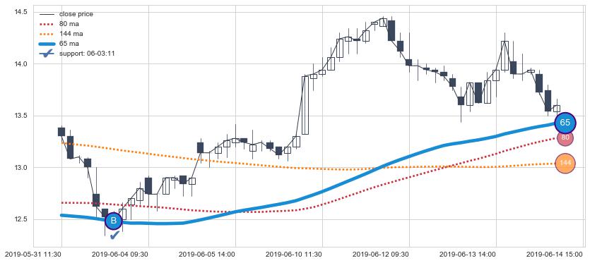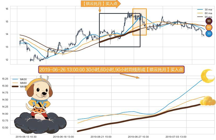 ⚀ 2019-06-18 15:00:00小时-2019-07-05 10:30:00小时显现 30小时-60小时-90小时均线 【烘云托月】买入点 看多信号,后市看涨,买入