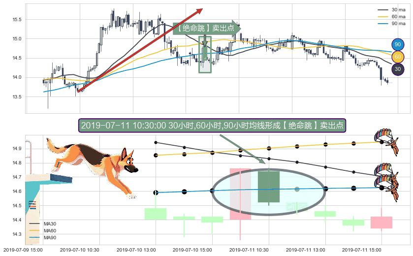 ⚀ 2019-07-11 10:30:00小时显现 30小时-60小时-90小时均线 【绝命跳】卖出点 看空信号,后市看跌,卖出