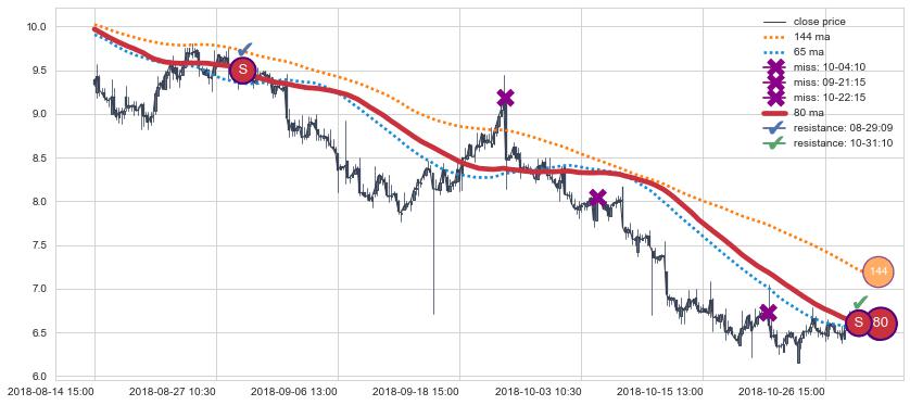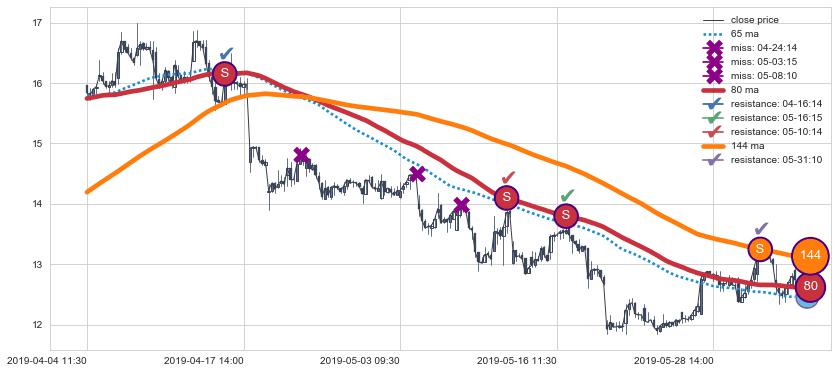 04-16 10:30至06-04 09:30 慢线与快线呈空头排列, 慢线与快线接触少,无缠绕
