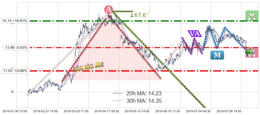 ♘ 阻力价格位16.19,可信任强度81.93%,距离最后交易2019-07-31 15:00形成的收盘价格13.86相差 +16.81%