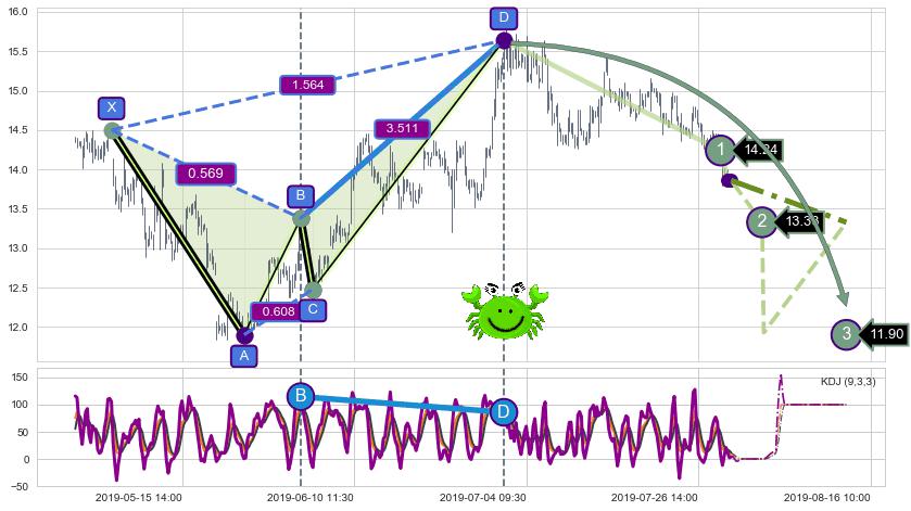 ➣ 已完成【螃蟹】形态起点X: 05-03:15, 终点D: 06-28:15, 共229交易小时