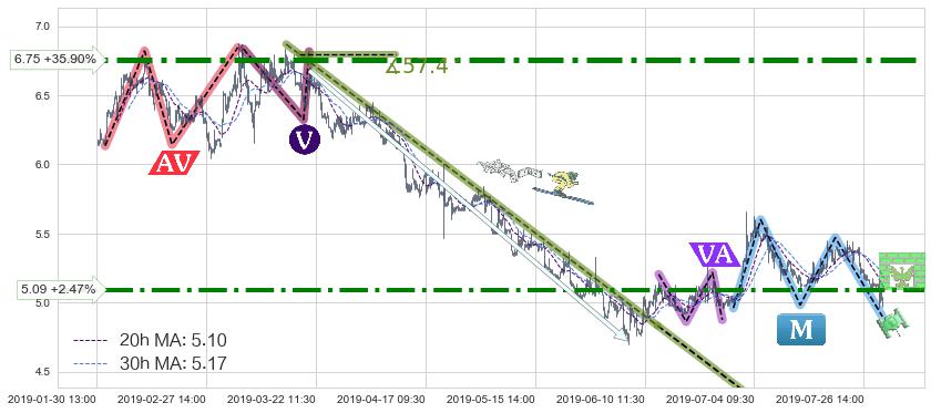 ♘ 阻力价格位5.09,可信任强度71.66%,距离最后交易2019-07-31 15:00形成的收盘价格4.97相差 +2.47%