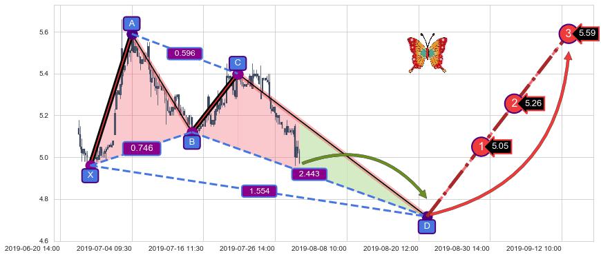 ➣ 未完成【蝴蝶】形态起点X: 06-26:10, 已到达C点: 07-22:11, 预测最终D点: 08-21:12, 共234交易小时